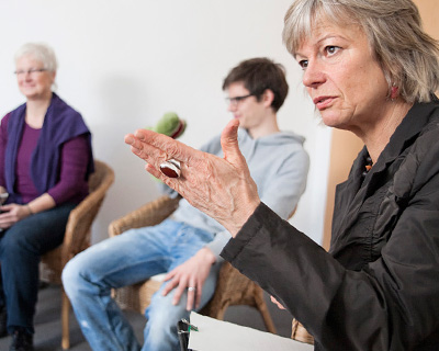 Ich arbeite mit Elementen aus der Gestalttherapie, aus dem Psychodrama und anderen szenischen Verfahren, zum Beispiel